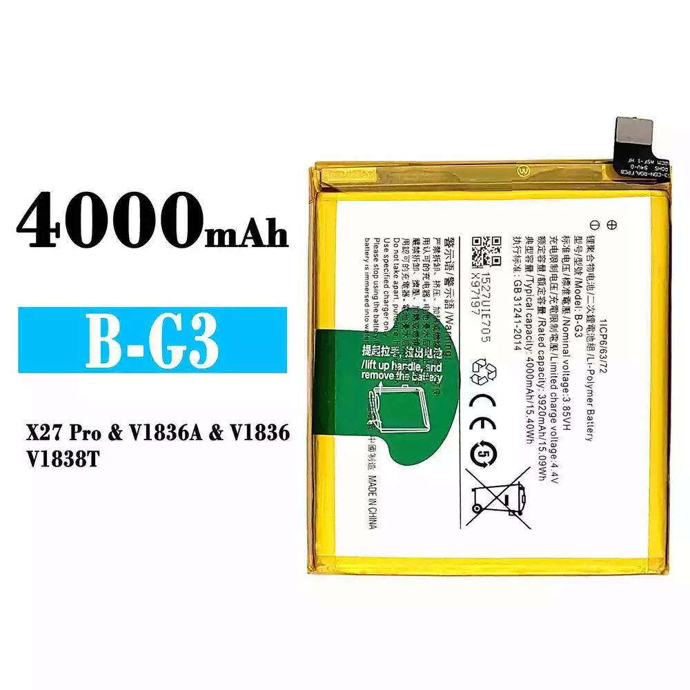 Akun malli B-G3 sovittaa VIVO X27 Pro/V1836/V1836A/V1838T
