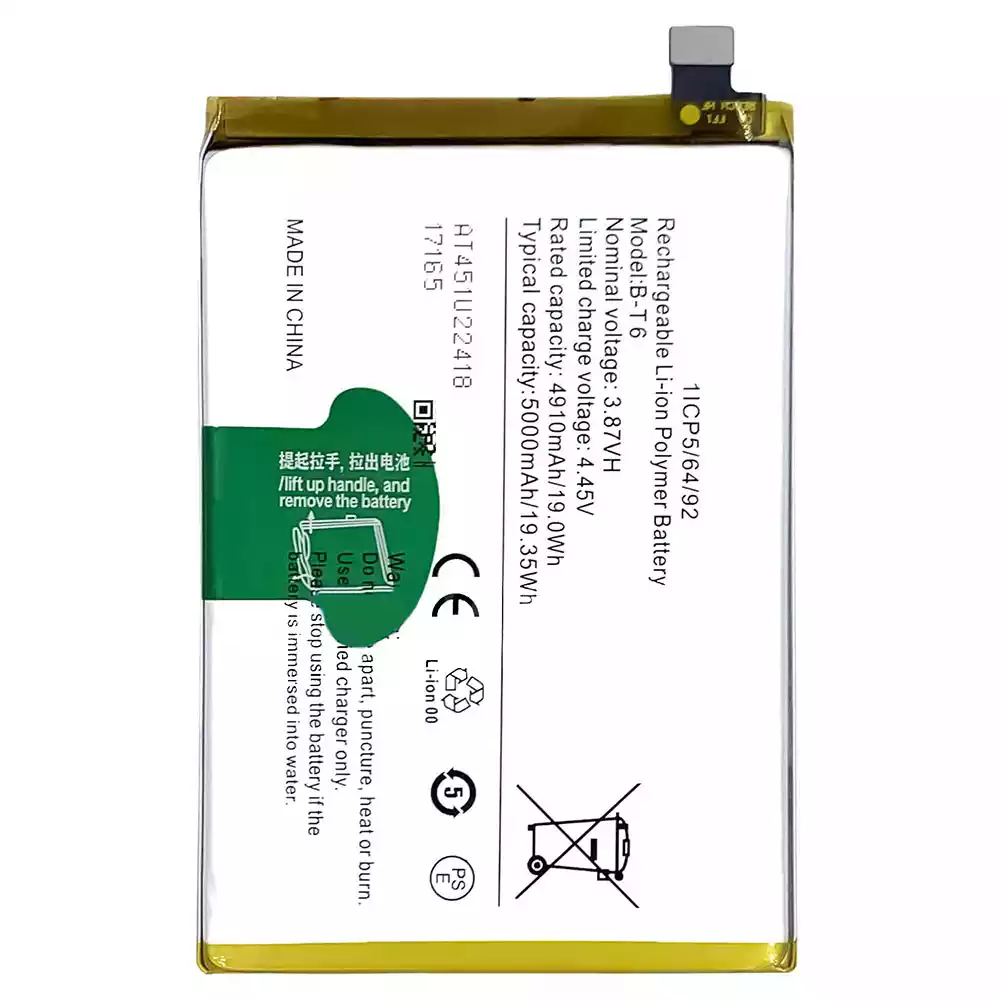Akun malli B-T6 sovittaa VIVO iQOO Z6 5G/T1 5G/Y55 5G/V2141/V2157