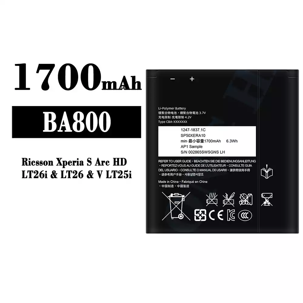 Akun malli BA800 sovittaa Sony Ricsson Xperia S Arc HD / LT26i / V LT25i / LT26