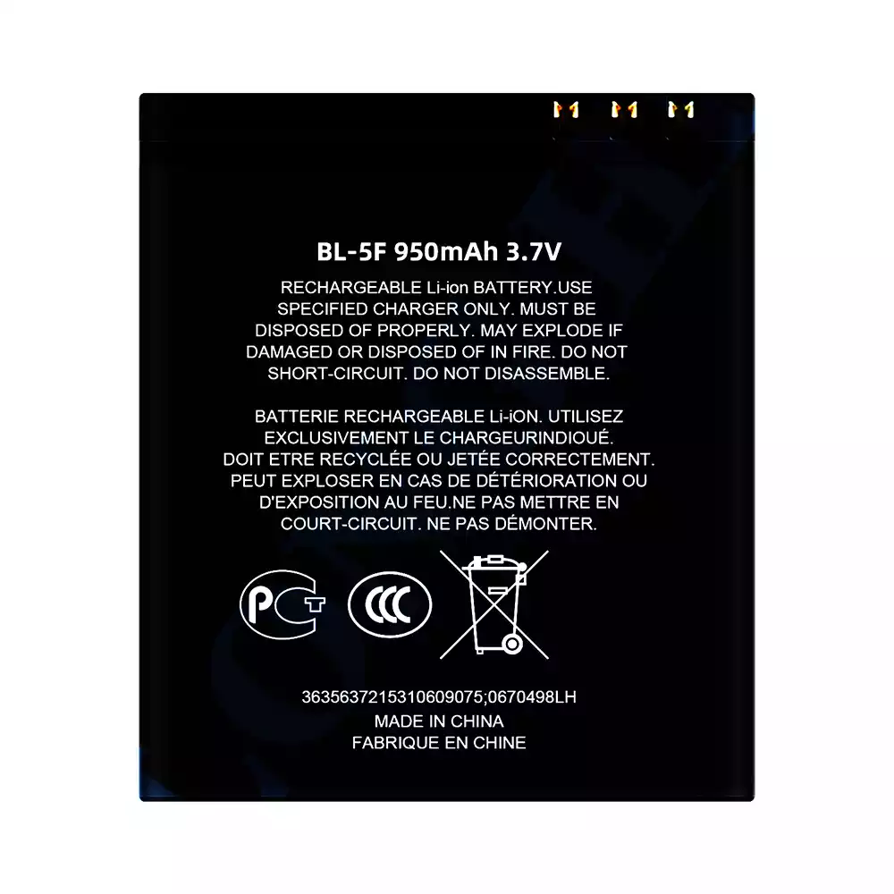 Akun malli BL-5F sovittaa Nokia NK E65 / N93I / N95 / N96 / 6290 / 6210S / X5 / C5-01
