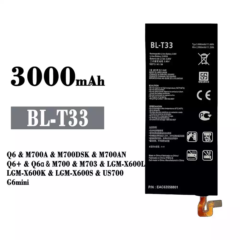 Akun malli BL-T33 sovittaa LG Q6 / M700A / M700DSK / M700AN / Q6+ / Q6a / M700 / M703 / LGM-X600L / LGM-X600K / LGM-X600S / US700 / G6mini