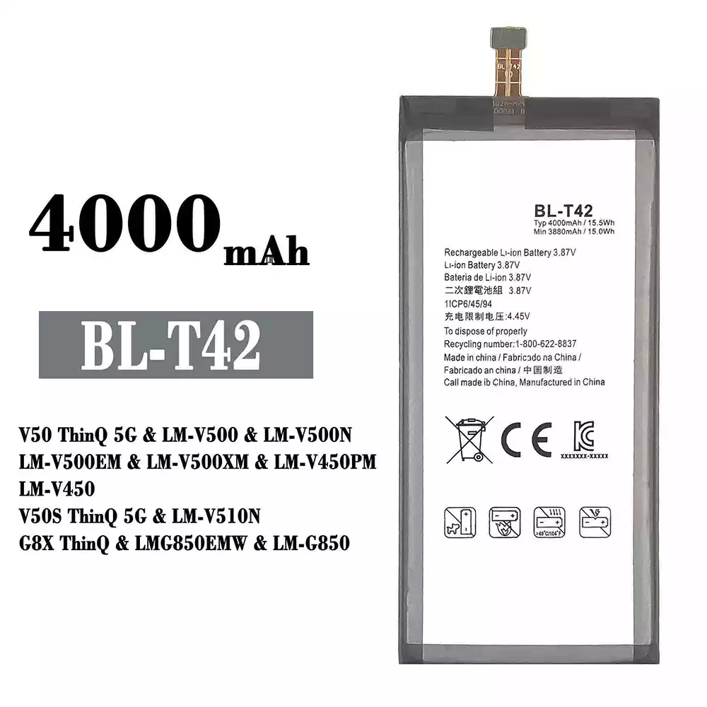 Akun malli BL-T42 sovittaa LG V50 ThinQ 5G / LM-V500 / LM-V500N / LM-V500EM / LM-V500XM / LM-V450PM / LM-V450 / V50S ThinQ 5G / LM-V510N / G8X ThinQ / LMG85OEMW / LM-G850