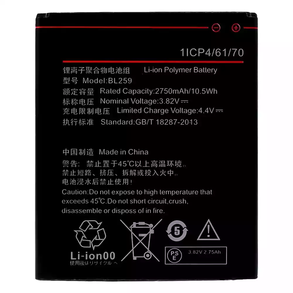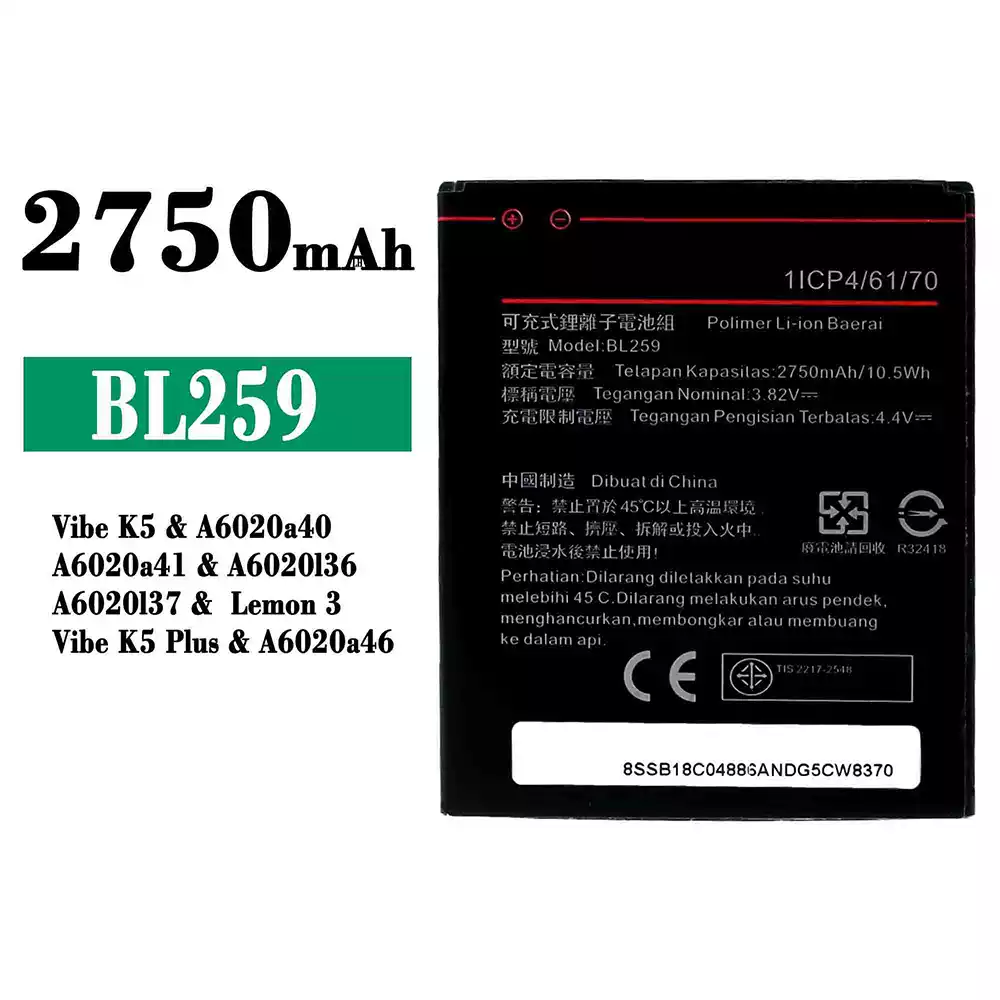 Akun malli BL259 sovittaa Lenovo Vibe K5 / A6020a40 / A6020a41 / A6020136 / A6020137 / Lemon 3 / Vibe K5 Plus / A6020a46