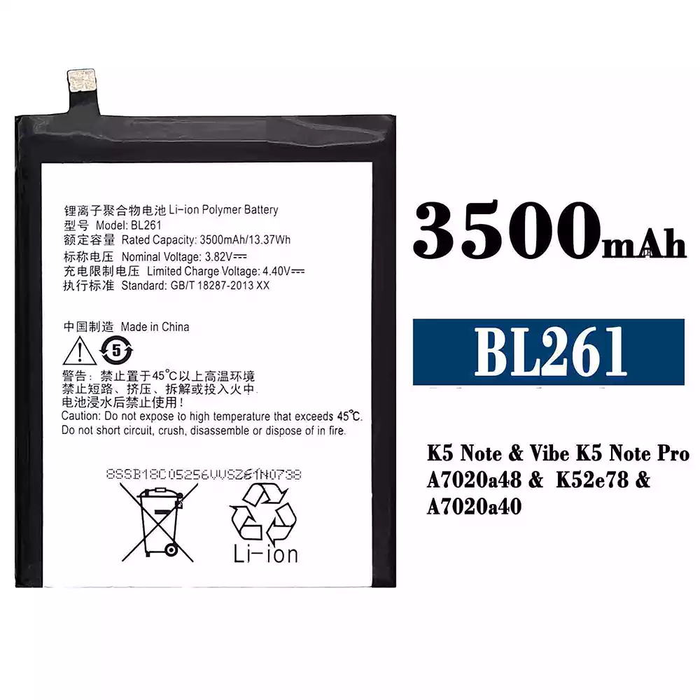 Akun malli BL261 sovittaa Lenovo K5 Note / Vibe K5 Note Pro / A7020a48 / K52e78 / A7020a40