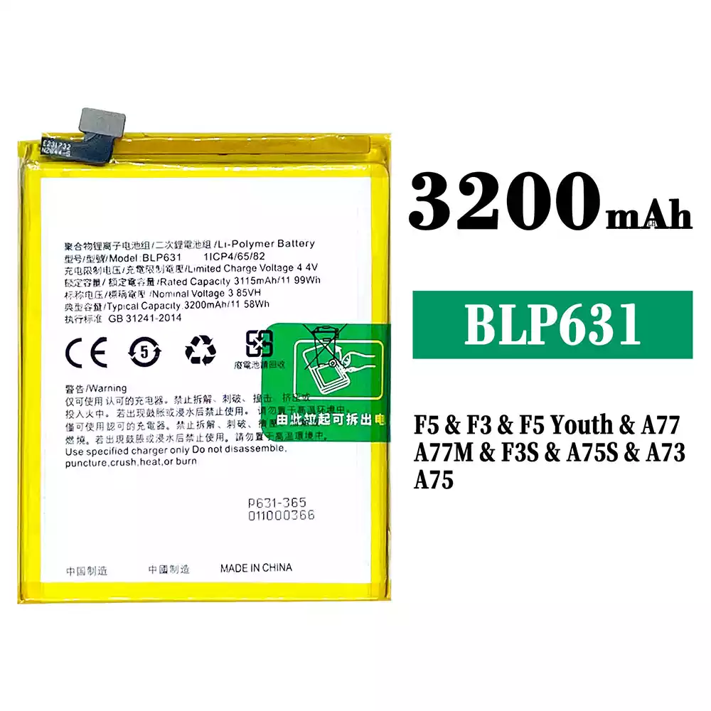 Akun malli BLP631 sovittaa OPPO F5 / F5 Plus / CPH1723 / CPH1727 / CHP1723 / CHP1727 / F5 Youth / A73 /CPH1725 / F3 / CPH1609 / A77 / CPHl715 / A75