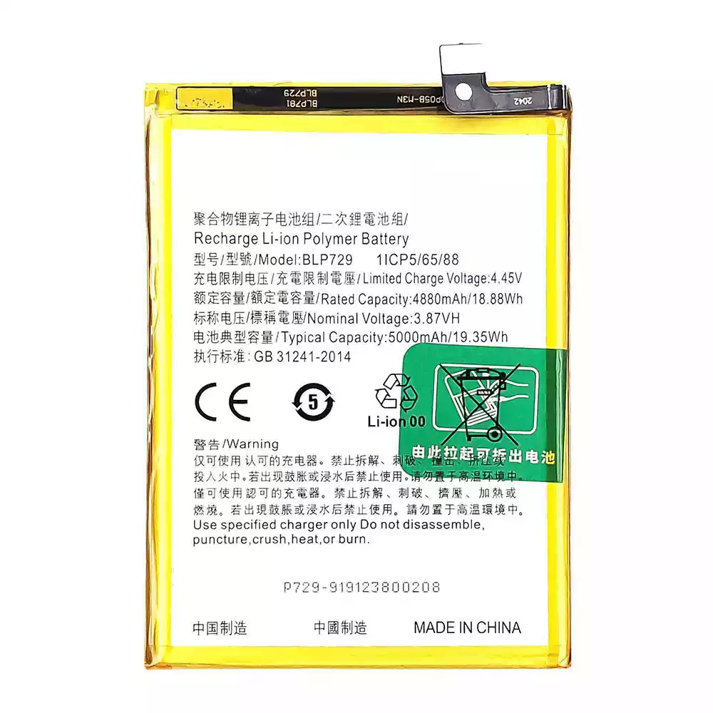 Puhelin Akku BLP729 sovittaa OPPO Realme 5 / Realme 5i / Realme 5s / Realme C3 / Realme C3 (3 cameras) / Realme C11 2020 / Realme C21 / Realme C21Y / Realme C20
