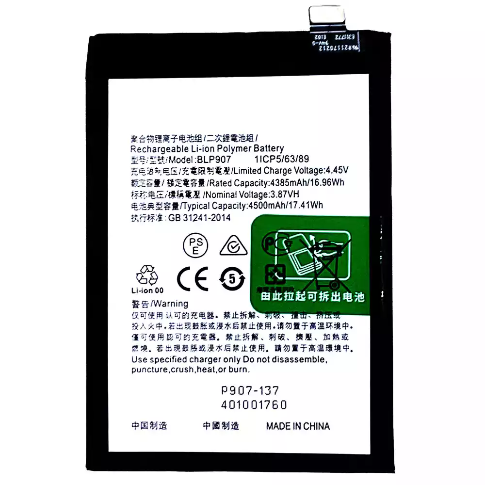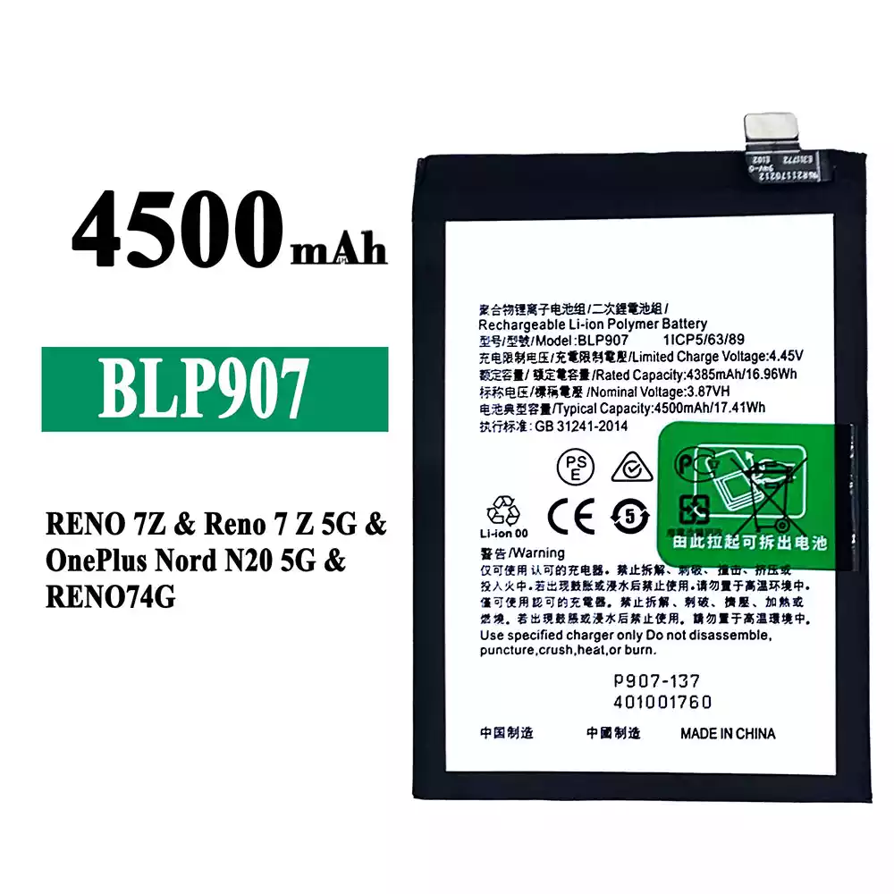 Puhelin Akku BLP907 sovittaa OPPO RENO 7Z / Reno 7Z 5G / RENO 7 4G / RENO 8 4G /OnePlus Nord N20 5G
