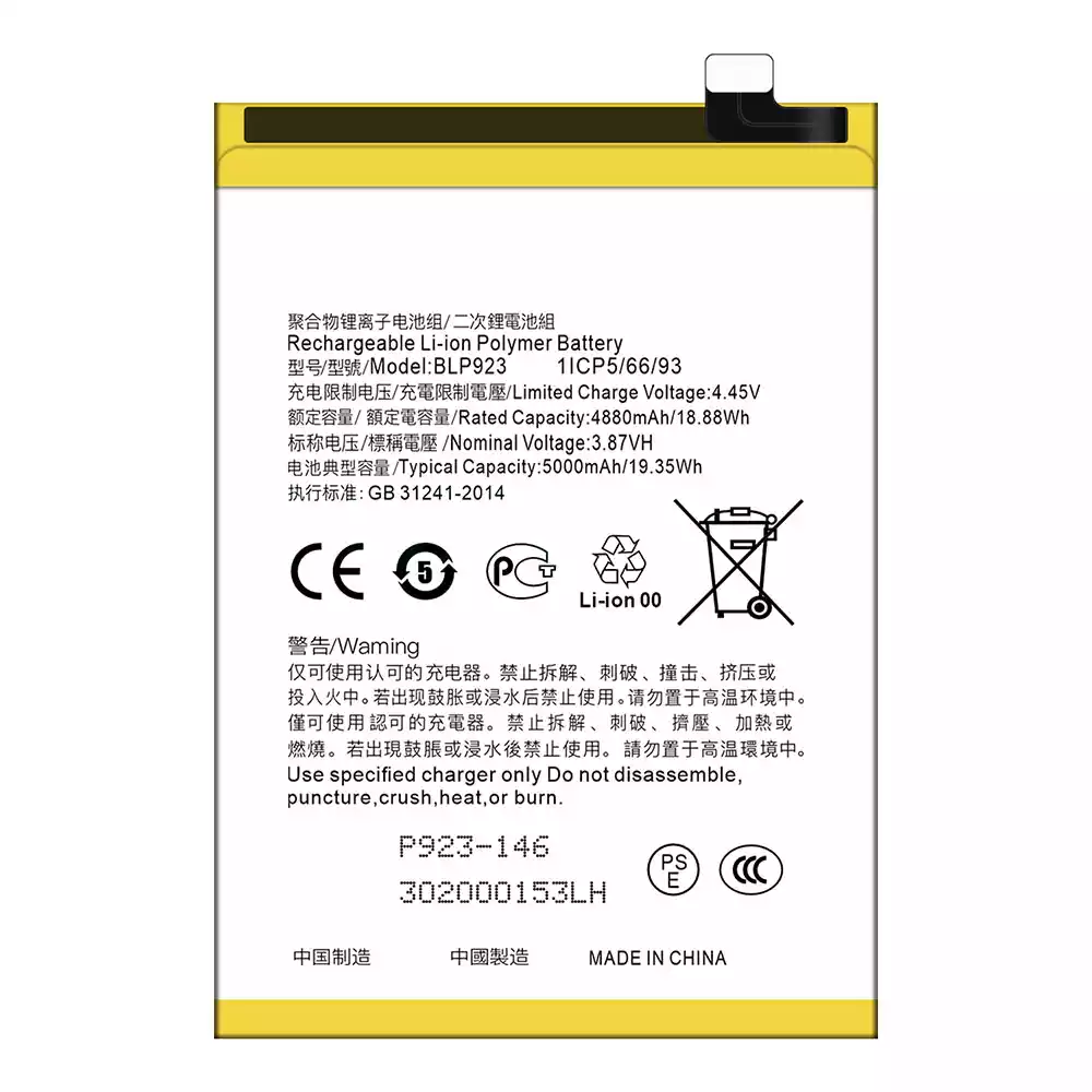 Akun malli BLP923 sovittaa OPPO A57 2020 /A57 4G 2022 /A57 2022 /A77 4G /A77 5G /A77s /A78 5G /A97 5G / K10 5G / OnePlus Nord N20 SE /OnePlus Nord N300 5G /Realme C51