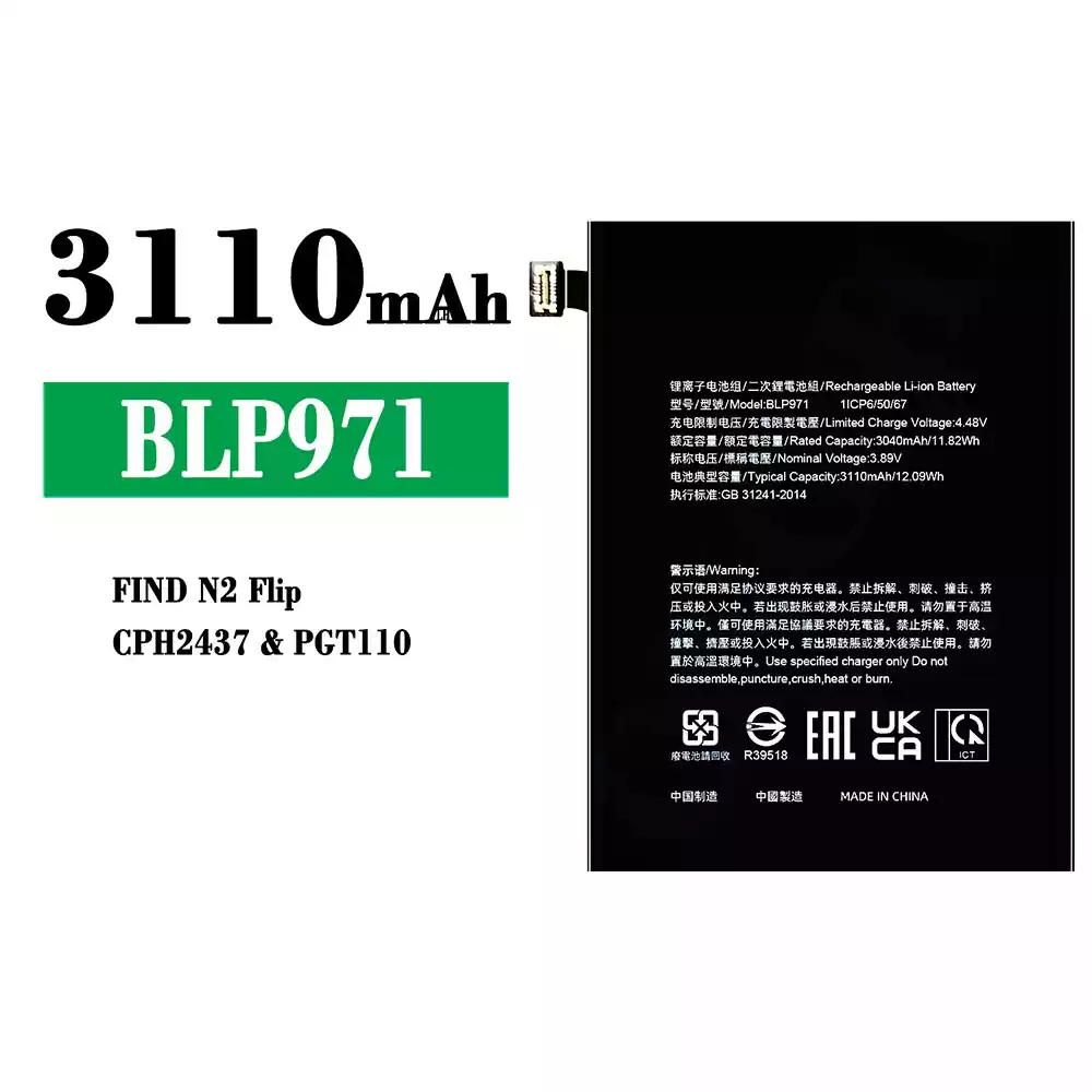 Akun malli BLP971 sovittaa OPPO FIND N2 Flip/CPH2437/PGT110