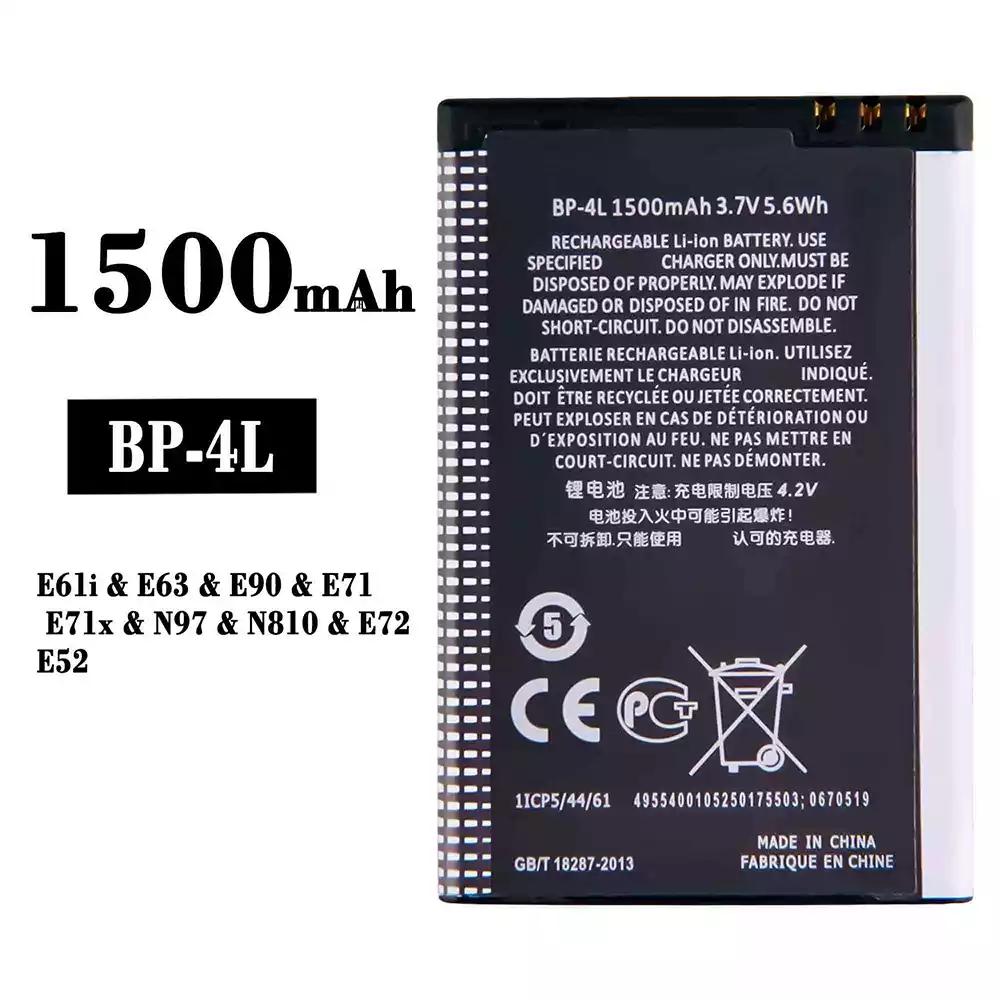 Akun malli BP-4L sovittaa Nokia E61i/E63/E90/E71/E71x/N97/N810/E72/E52