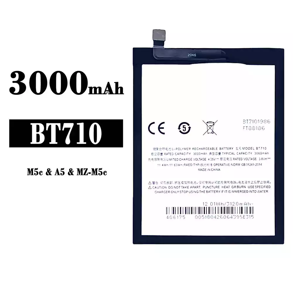 Akun malli BT710 sovittaa Meizu M5c/A5/MZ-M5c