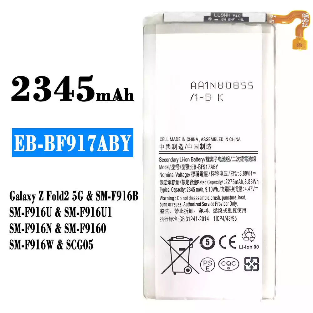 Akun malli EB-BF917ABY sovittaa Samsung Galaxy Z Fold 2 5G,SM-F916B,SM-F916U,SM-F916U1,SM-F916N,SM-F9160,SM-F916W,SCG05