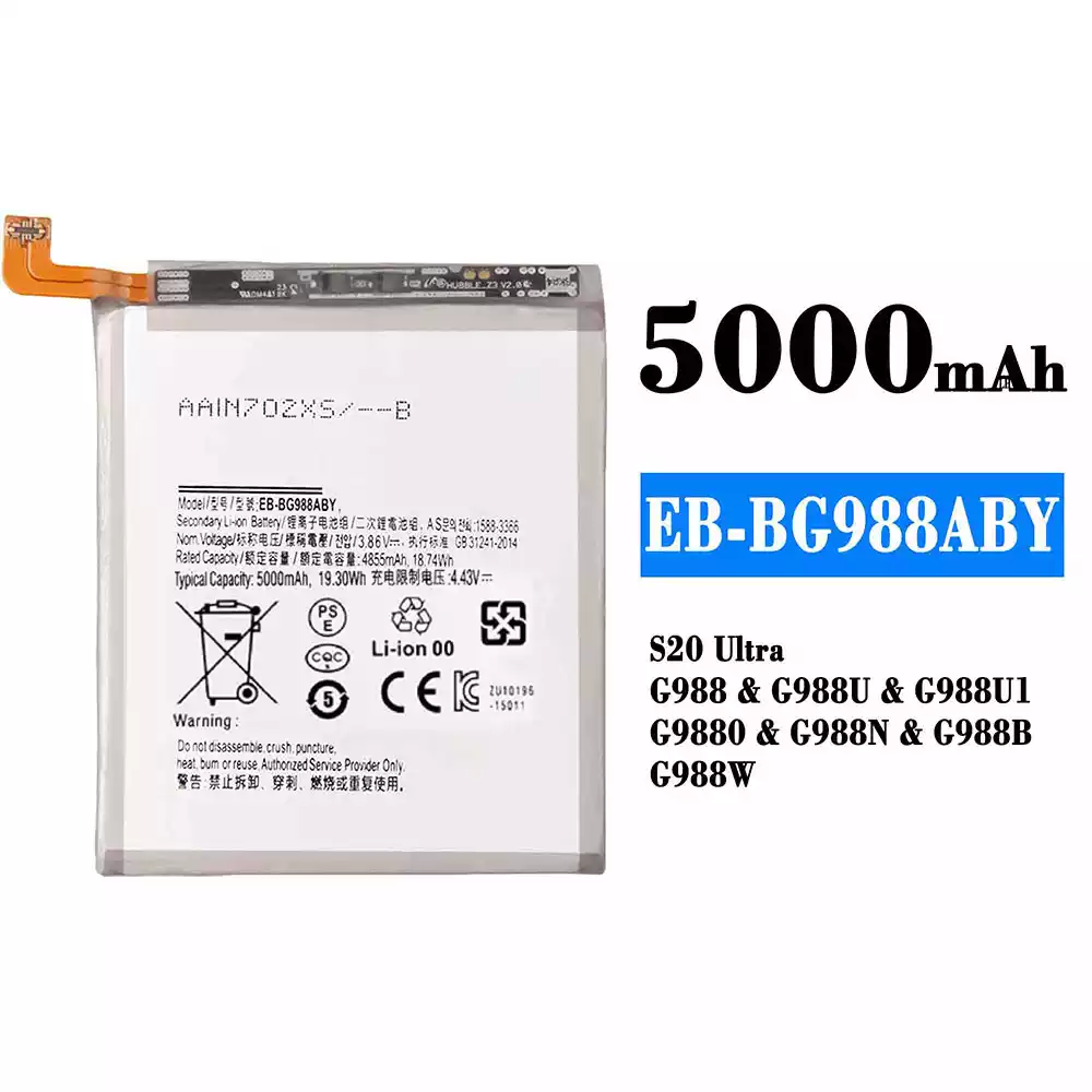Akun malli EB-BG988ABY sovittaa Samsung S20 Ultra/G988/G988U/G988U1/G9880/G988N/G988B/G988W