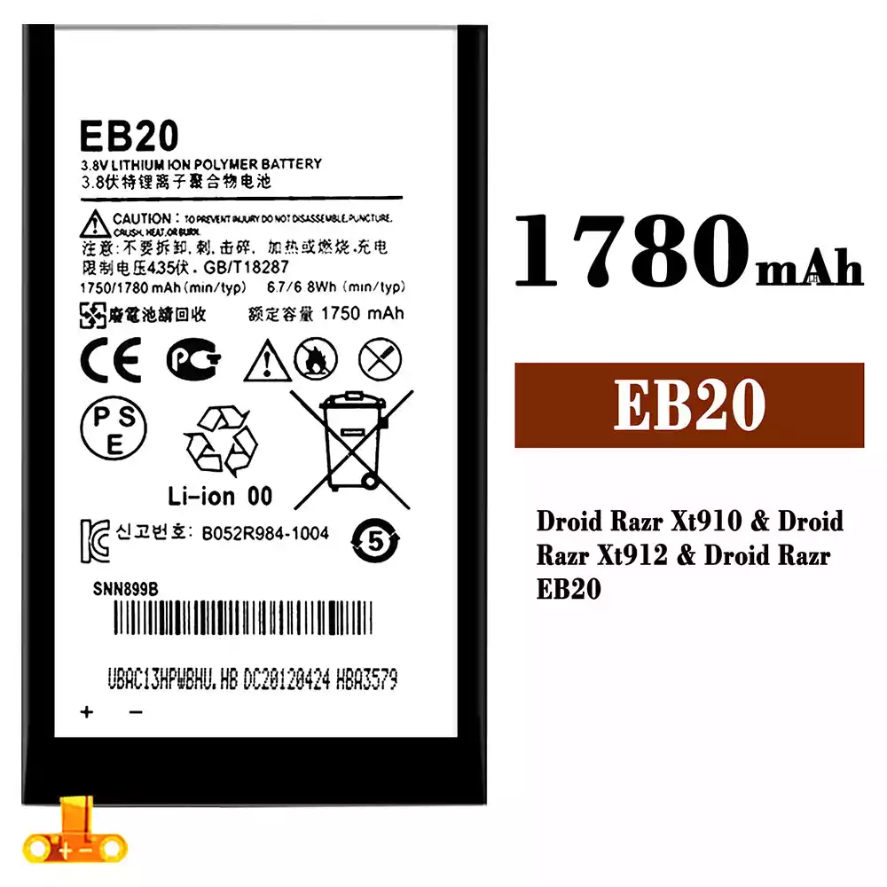 Akun malli EB20 sovittaa Motorola Droid Razr Xt910 / Droid Razr Xt912 / Droid Razr EB20