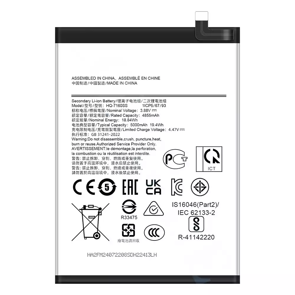 Akun malli HQ-7160SS sovittaa Samsung Galaxy A06/SM-A065F/SM-A065F DS
