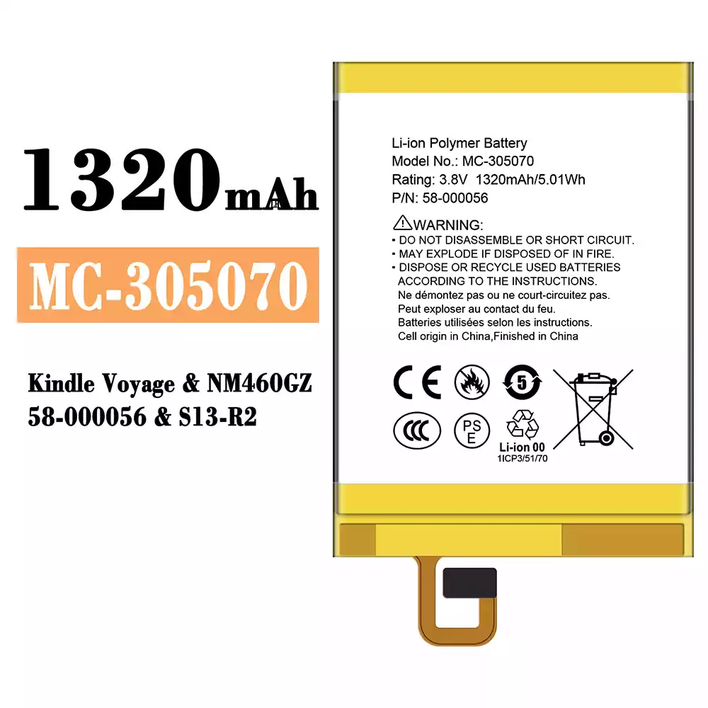 Akun malli MC-305070 sovittaa Amazon Kindle Voyage/NM460GZ/58-000056/S13-R2
