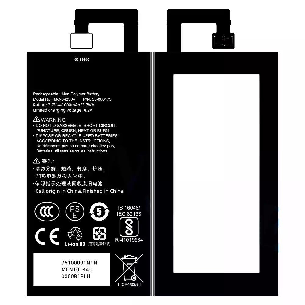 Kapasiteetti: 1000mAh (3.7Wh)