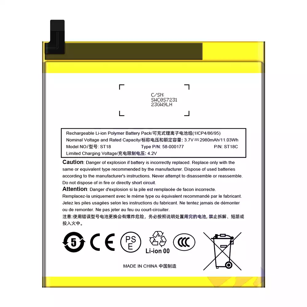Akun malli ST18 sovittaa Amazon Kindle Fire 7″ 7th/SR043KL/58-000177