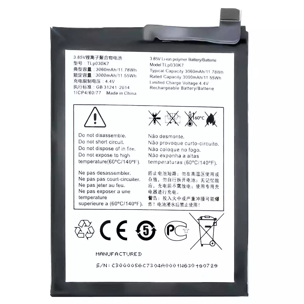 Akun malli TLP030K7 sovittaa Alcatel 1s 2019/5024A/5024D/5024I/5024J/5024D_EEA/5024F/5024F_EEA