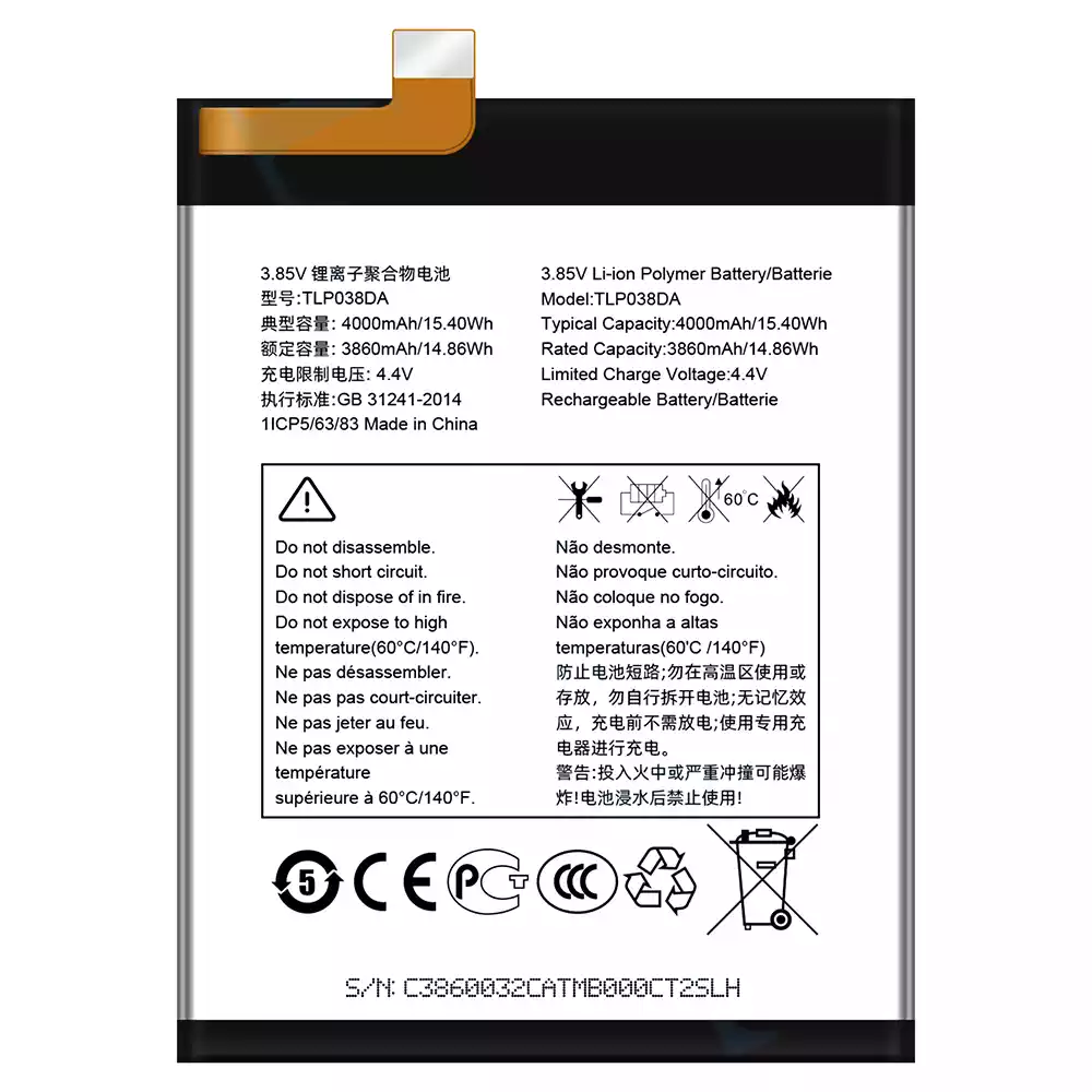 Akun malli TLP038DA sovittaa Alcatel TCL 20E