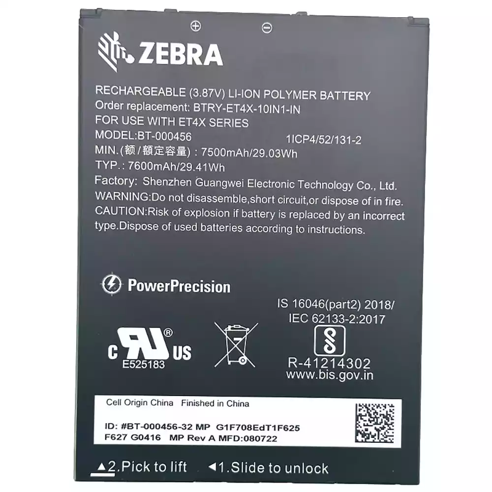 Uudenveroinen akku ZEBRA BTRY-ET4X-10IN1-IN BT-000456